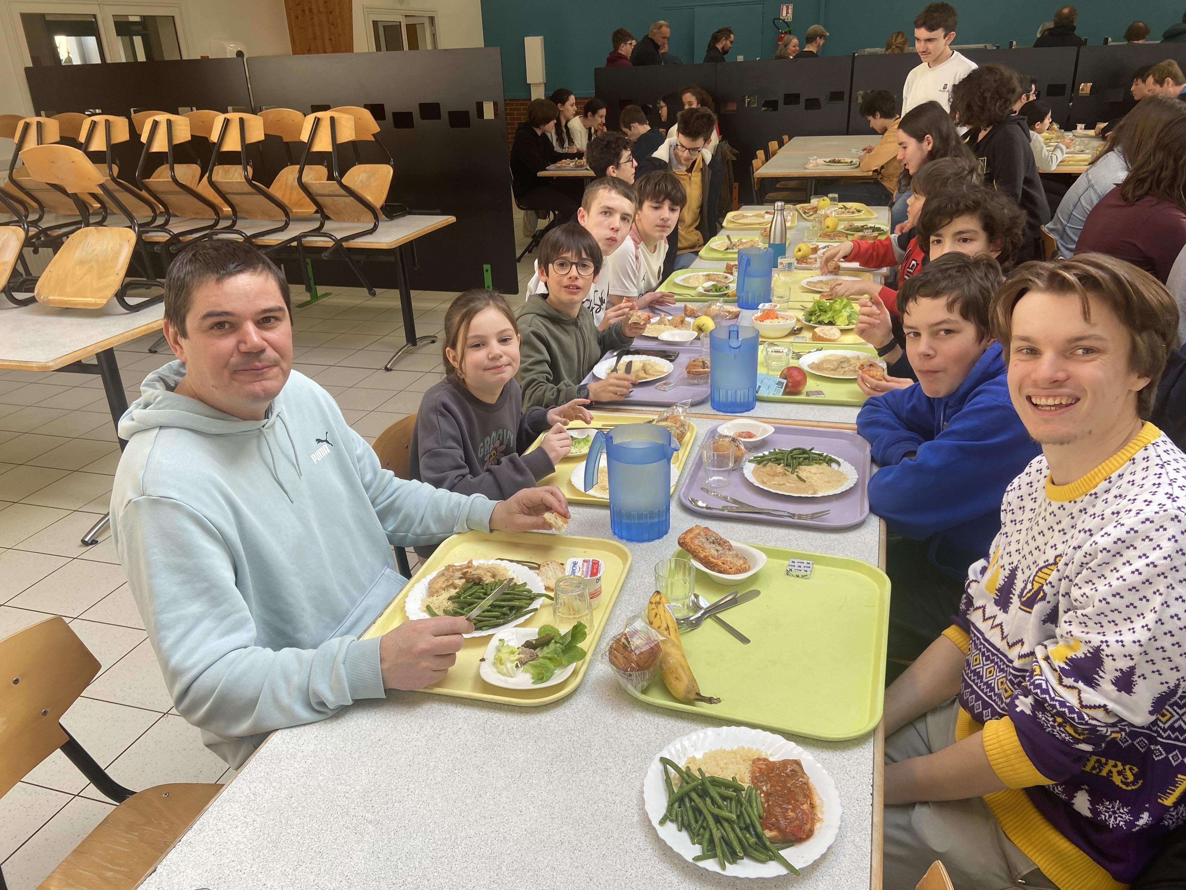 Nous retrouvons Pommerit-Jaudy, traditionnelle terre d'accueil du Bretagne jeunes, une équipe de bénévoles rodée et un lycée internat parfait pour accueillir une telle compétition. Nous dormons et mangeons sur place avec nos 9 jeunes Domloupéens participants au Bretagne (Cassius, Maya et Yanis étant malheureusement indisponibles pour cette édition 2026 bien que qualifiés, rdv l'année prochaine ;) ) et Axel et Juliette avec qui le groupe a eu plaisir à partager ses repas.